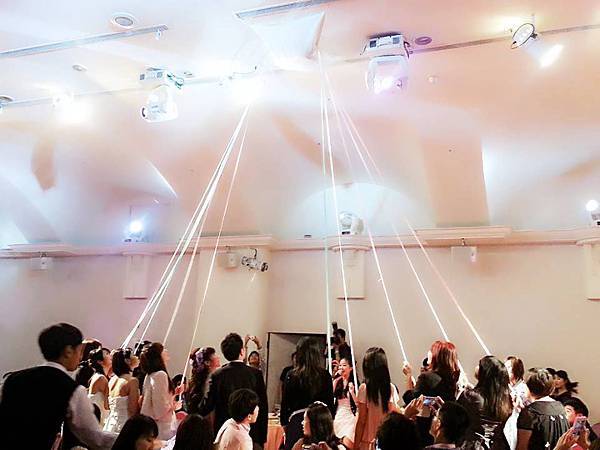有別於一般的抽捧花和丟捧花,萬國翻譯公司們將平安的替換捧花放至於天花板